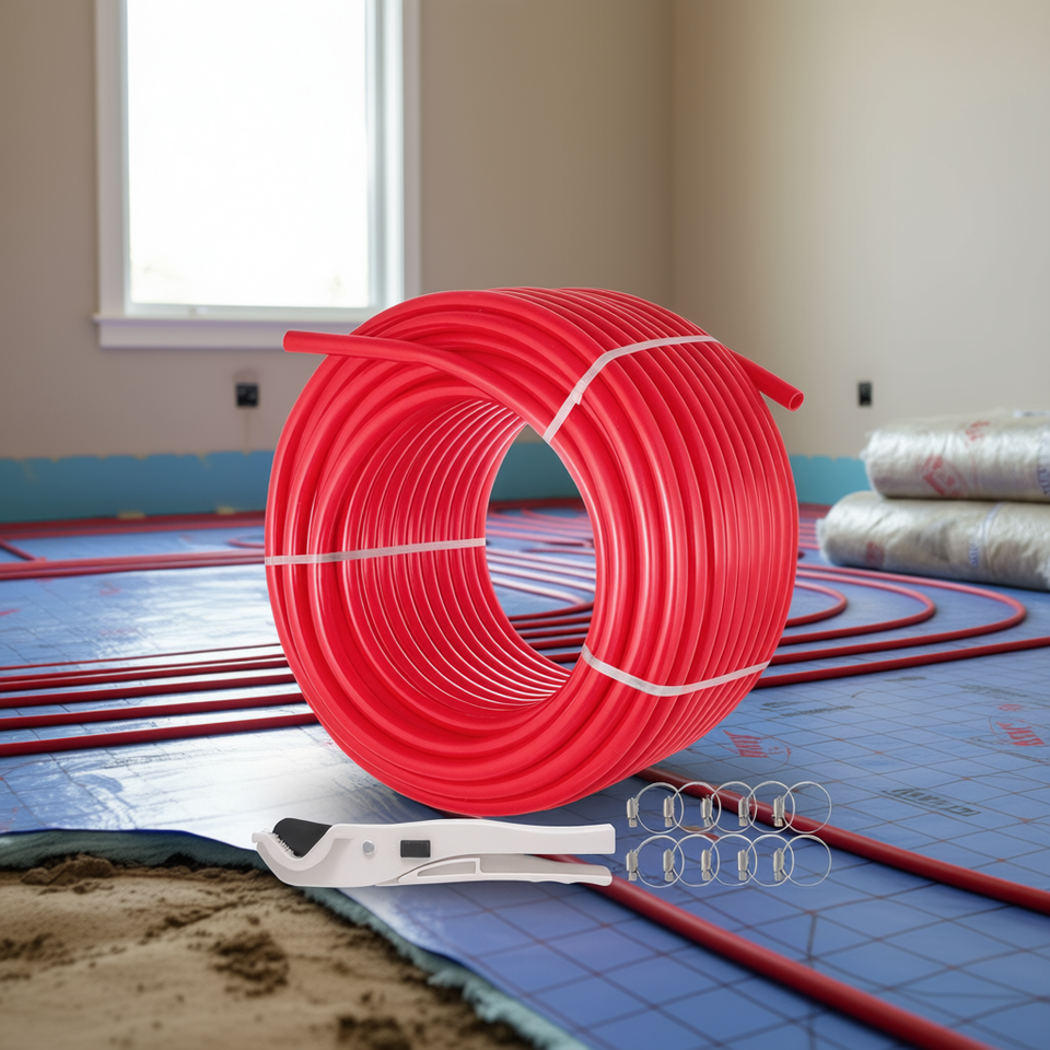 Tubo PEX Rosso 5/8 Pollici 500 Piedi per Riscaldamento a Pavimento Radiante Flessibile Residenziale e Commerciale con Clip