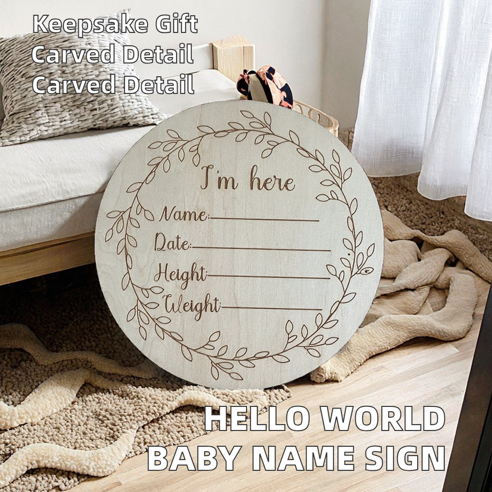 Product Name:5.9 Inch Wooden 'I'm Here' Newborn Sign