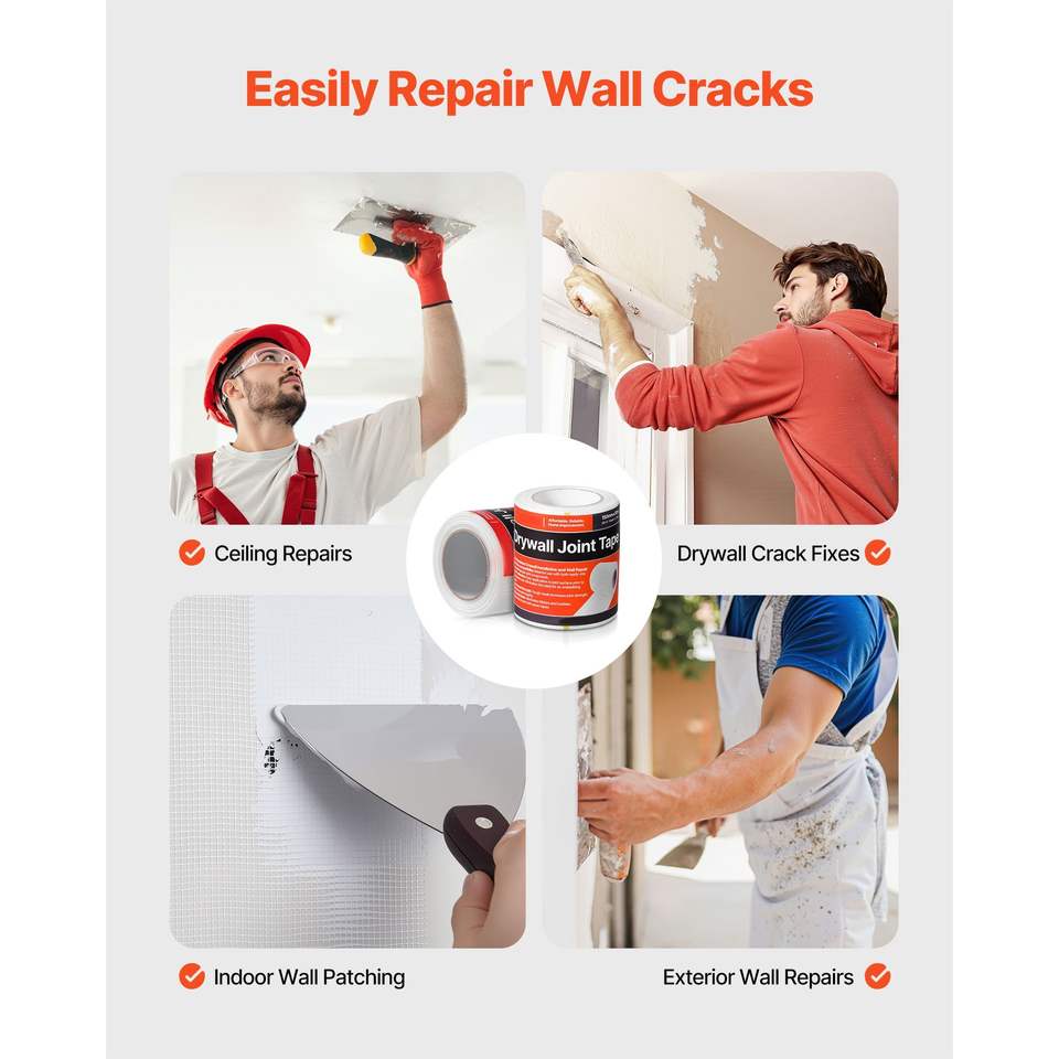 Nastro Adesivo in Fibra di Vetro per Giunti di Cartongesso, 15 cm L x 30 m L, Facile da Applicare, 12 Rotoli