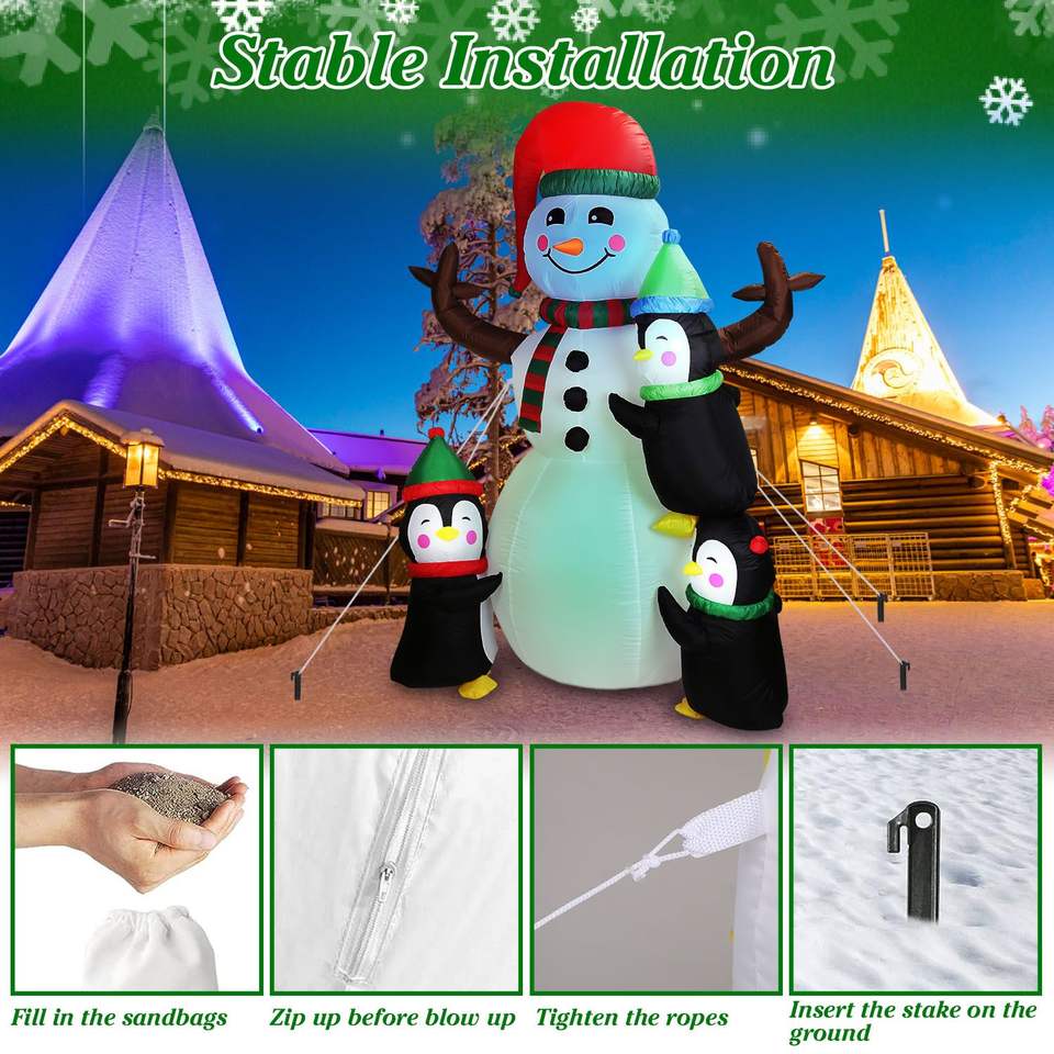 Decorazione Natalizia Gonfiabile da Esterno con Luci LED da 1,8 m, Pupazzo di Neve e Pinguino, con Compressore d'Aria Integrato