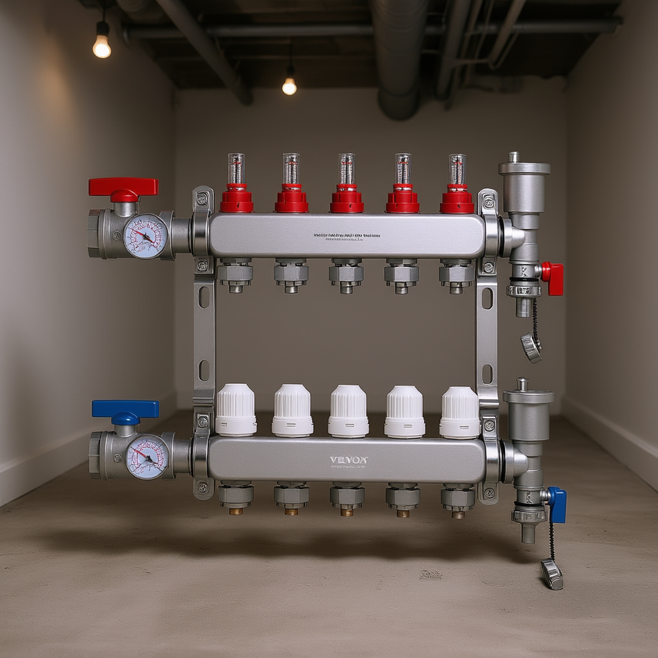 5-Branch Radiant Heat Manifold Set For 1/2 Inch Pex Tubing Home Hvac Floor Heating System