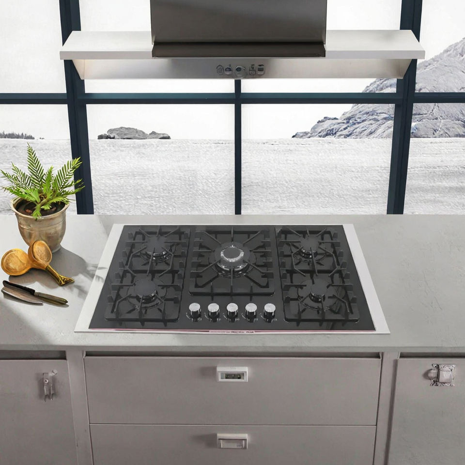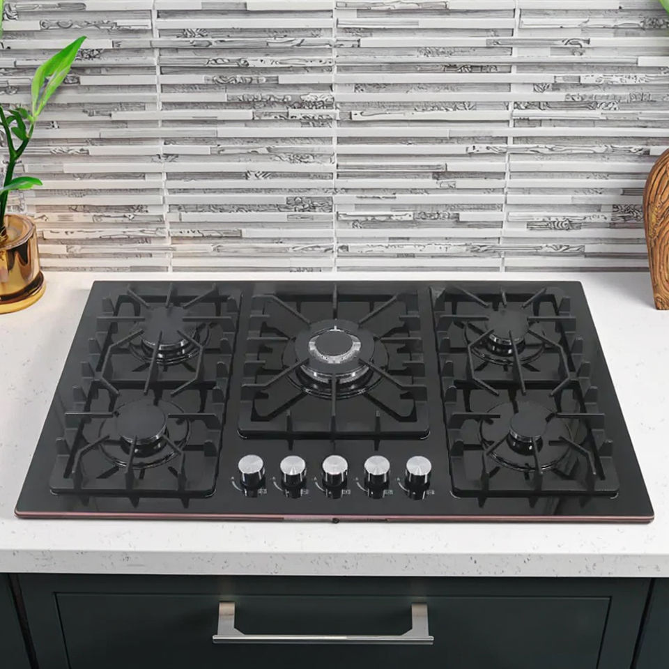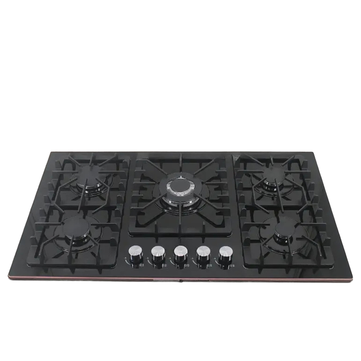 5-Burner Tempered Glass Gas Stove Built-In Household Liquefied Petroleum Gas Oven with Battery and Electric Power Source