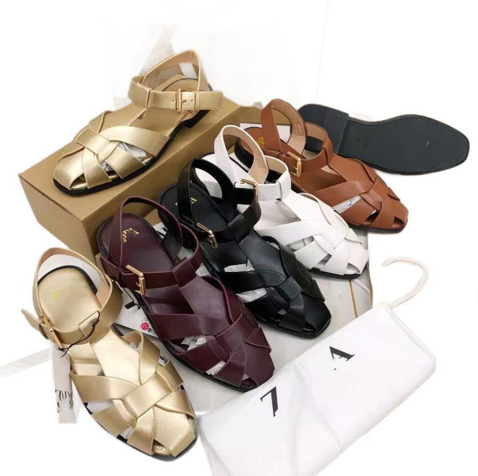 Sandali romani da donna a fondo piatto in tessuto a 5 colori stile coreano nuovi cinturini regolabili in stile estivo sul retro adatti alle donne.