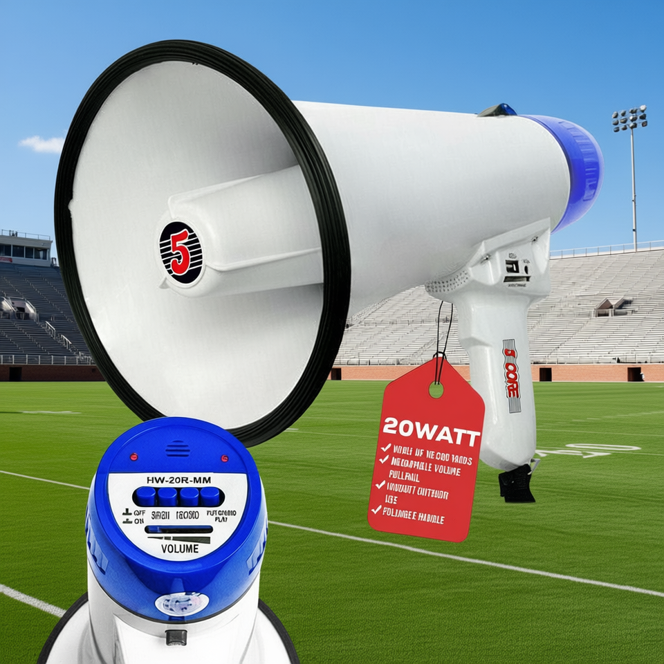 5 Core Megaphone Bullhorn 20W Ergonomic Handle With Recording For Coaches Football Use USB Powered