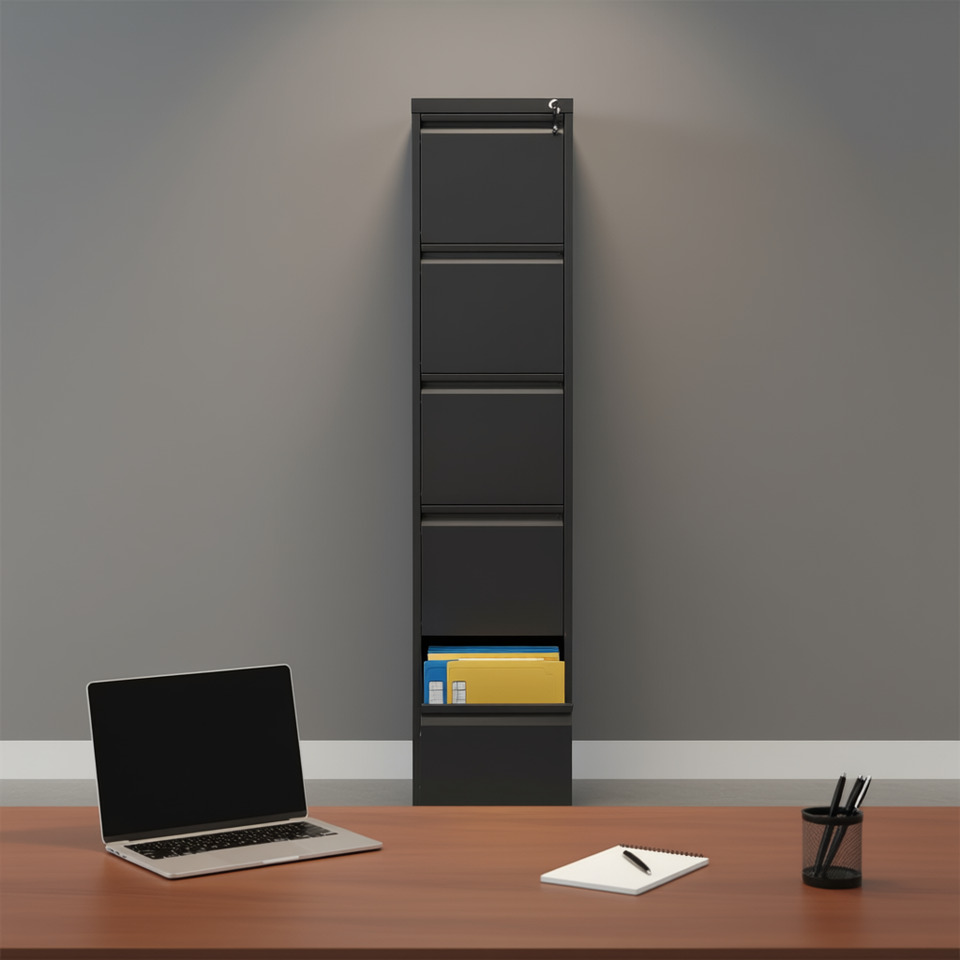 Armadietto verticale in metallo nero a 5 cassetti formato A4/Letter/Legal con serratura per ufficio e casa