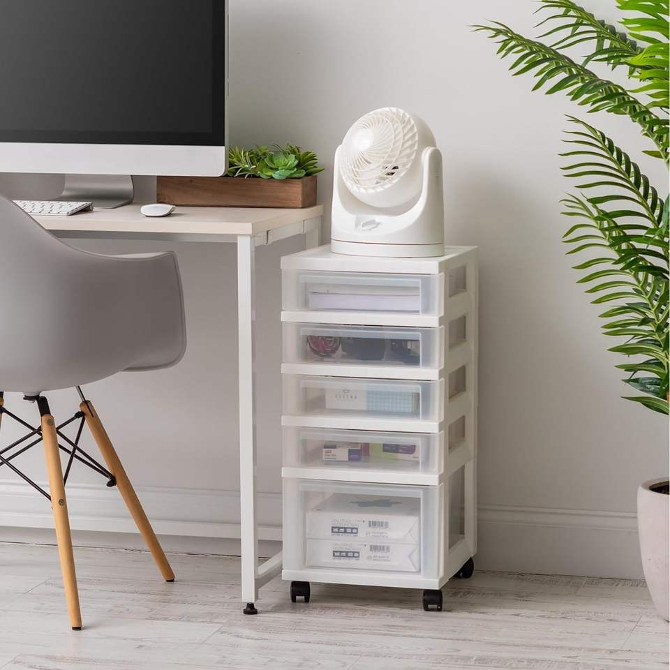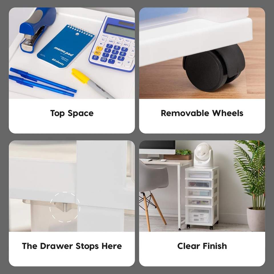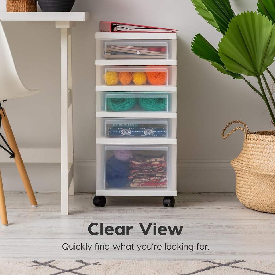 Carrello portaoggetti in plastica a 5 cassetti con ruote, per forniture artistiche e artigianali per l'aula, organizer per armadi e cassettiere