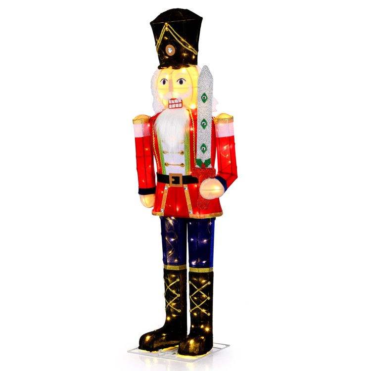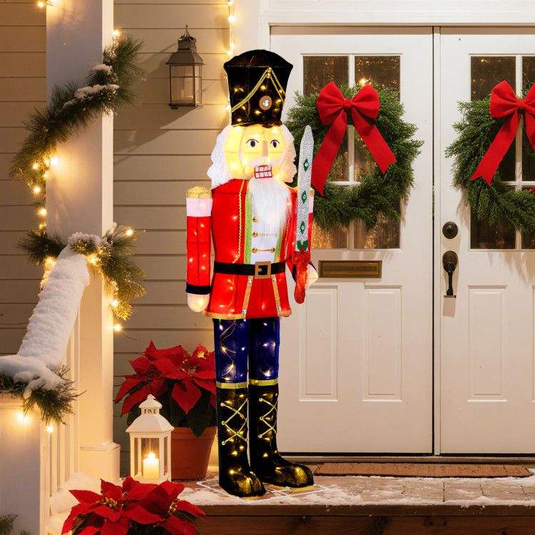 Soldato Schiaccianoci di 1,5 m per Decorazioni Natalizie da Esterno con Spada Glitterata e Luci Eleganti