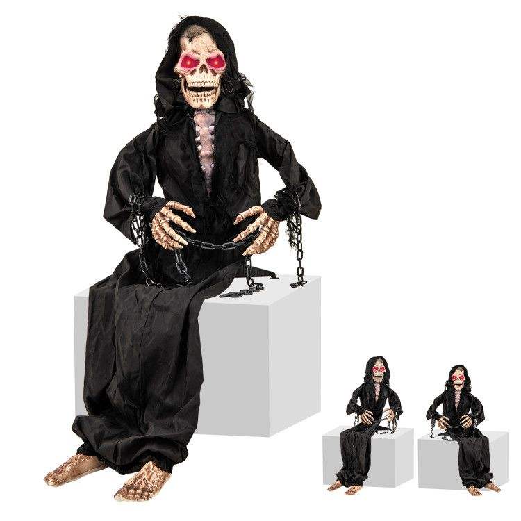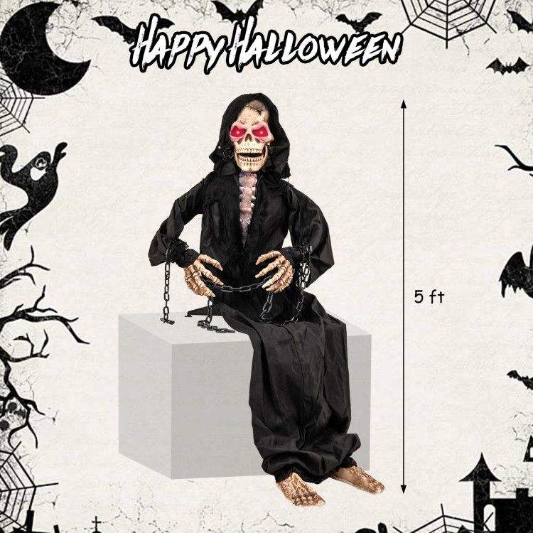Decorazione Animata di Halloween da 1,5 Metri con Design di Grimorio Seduto e Saluti Vocali per un'Atmosfera Festiva Domestica