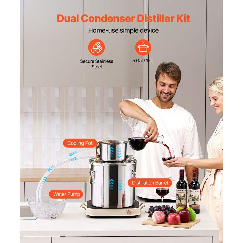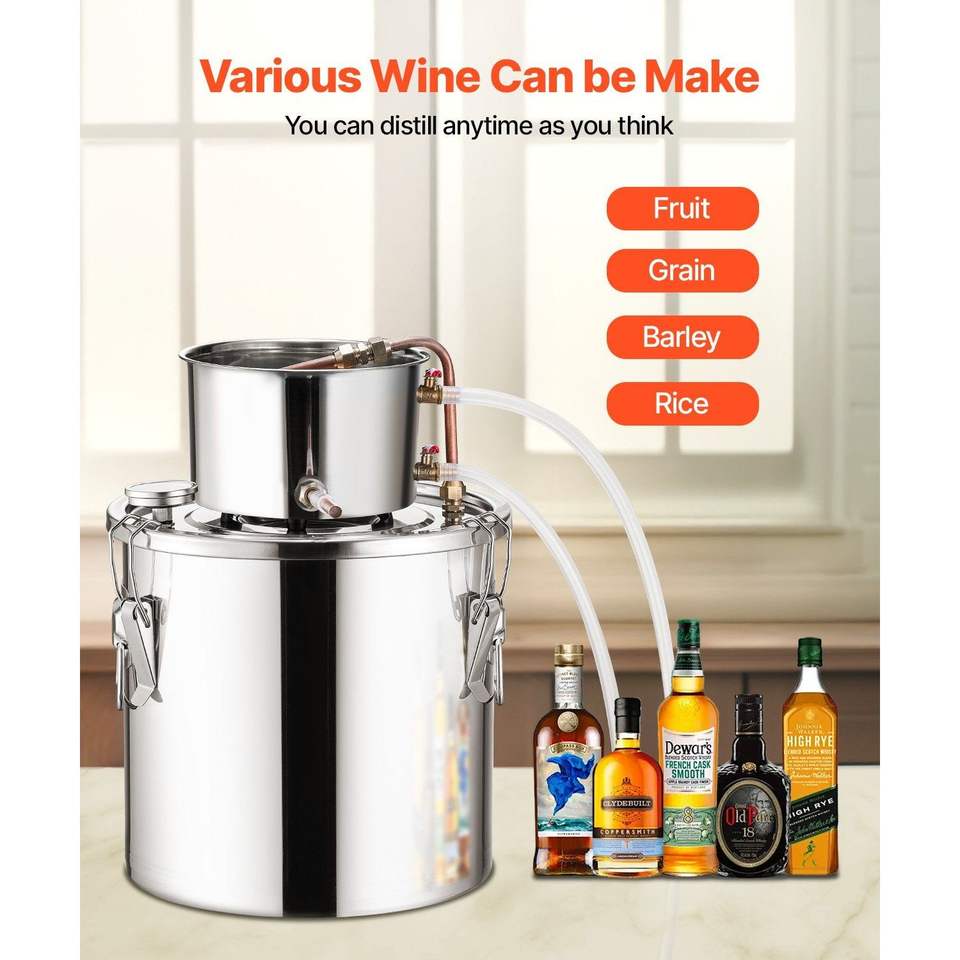 5 Gal/19 L Stainless Steel Home Brewing Distillation Equipment Water Alcohol Fermentation Kit Copper Coil Refining Still for