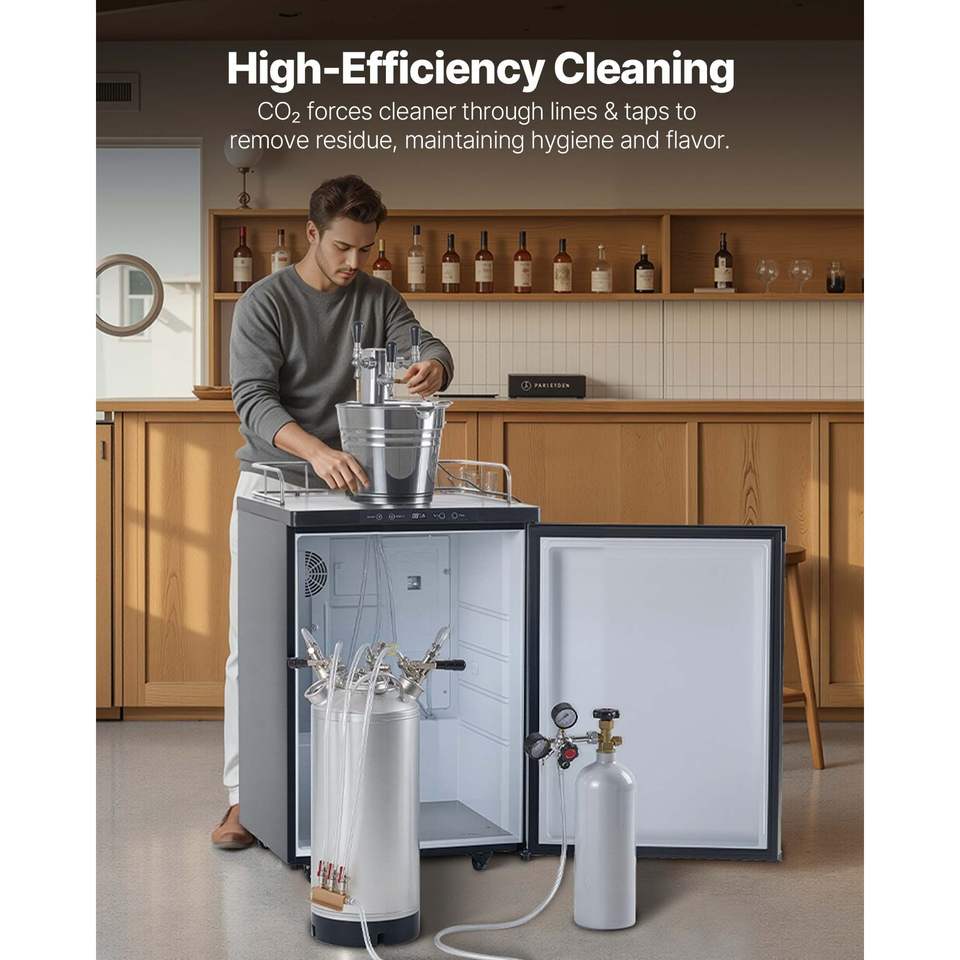 Kit di Pulizia per Fusti da 5 Galloni/19L con 4 Connessioni D-Coupler e Base in Gomma, Detergente per Linee di Birra