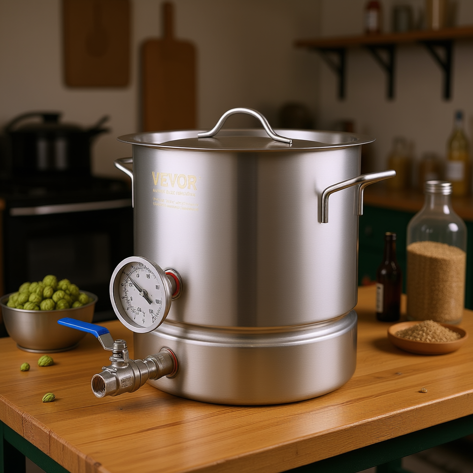 Bollitore per Birra in Acciaio Inox da 5 Galloni con Fondo Tri-Ply e Coperchio con Valvola a Sfera, Kit per Birrificazione Domestica