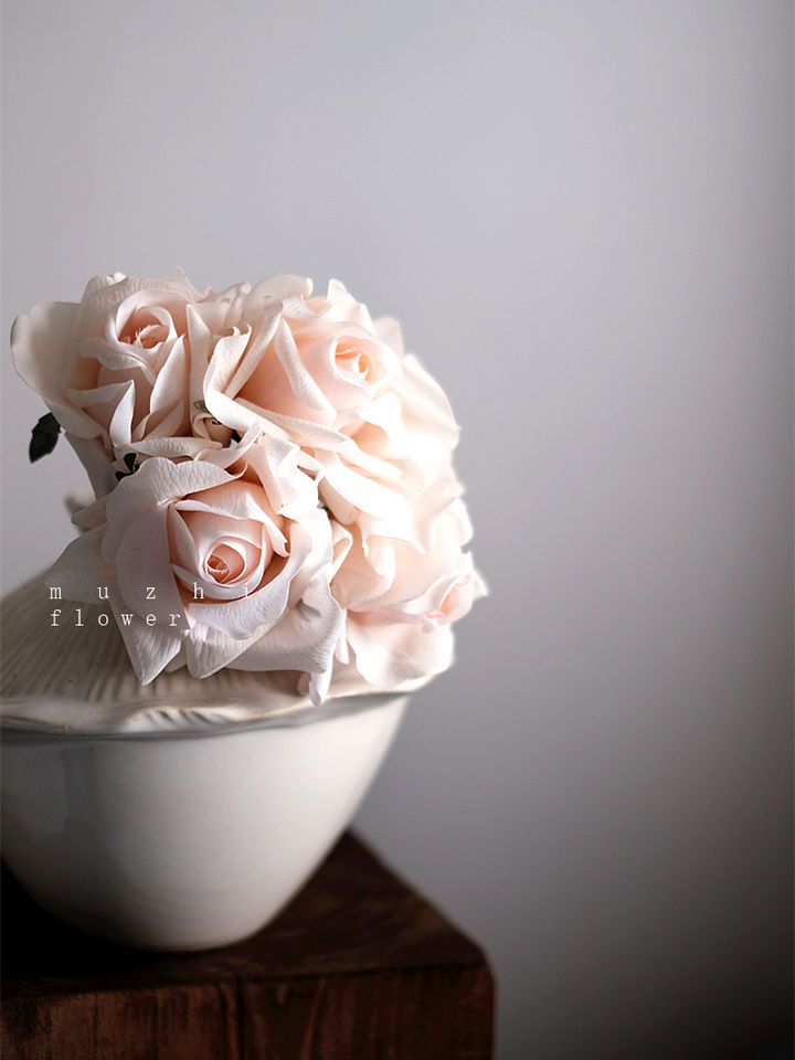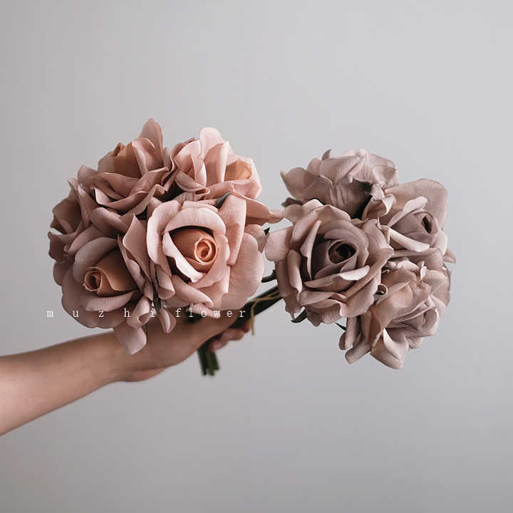 5-Head Real Touch Rose Flower Bouquet Beige Latex Silk Roses for Weddings Handmade Artificial Flowers with Real Touch Effect