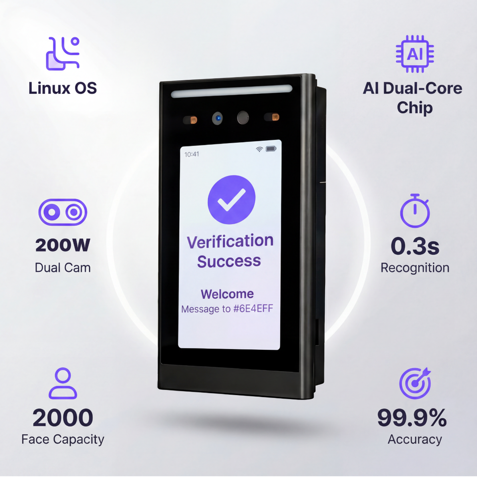 Dispositivo di Controllo Accessi Biometrico con Riconoscimento Facciale, Schermo Touch da 5 Pollici, Visione Notturna, SDK Gratuito, Impermeabile