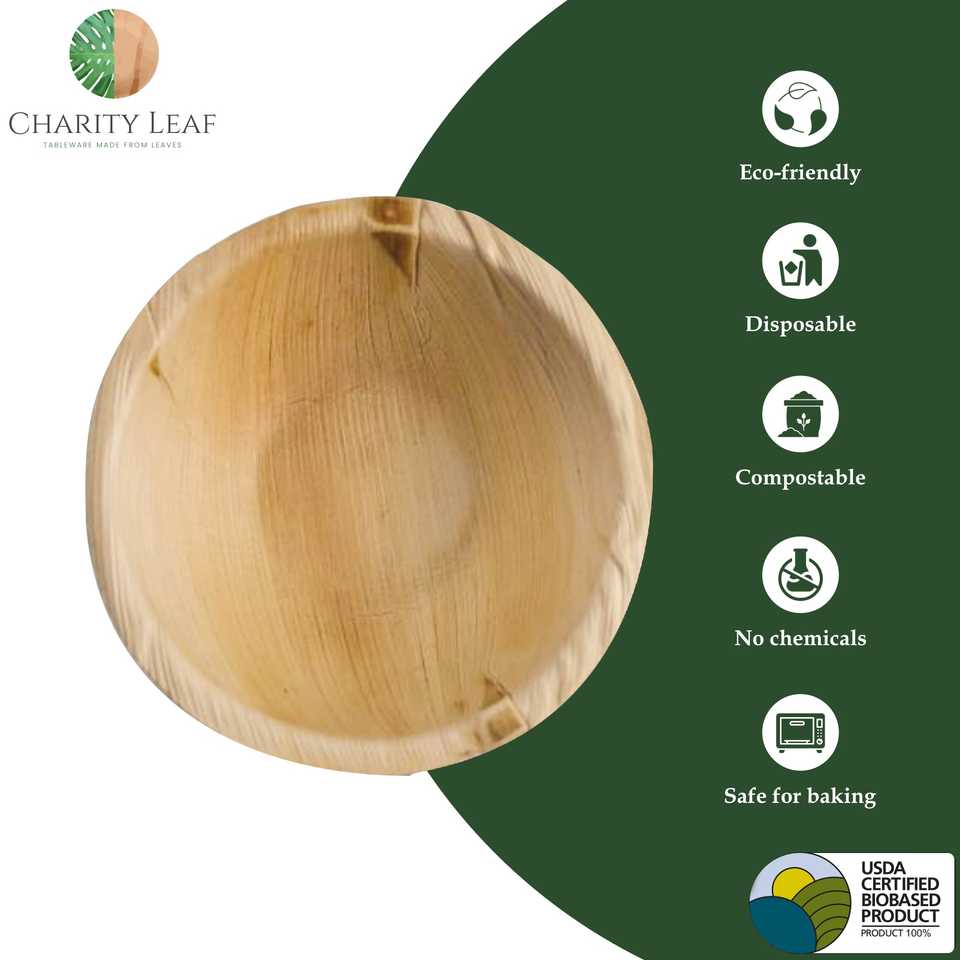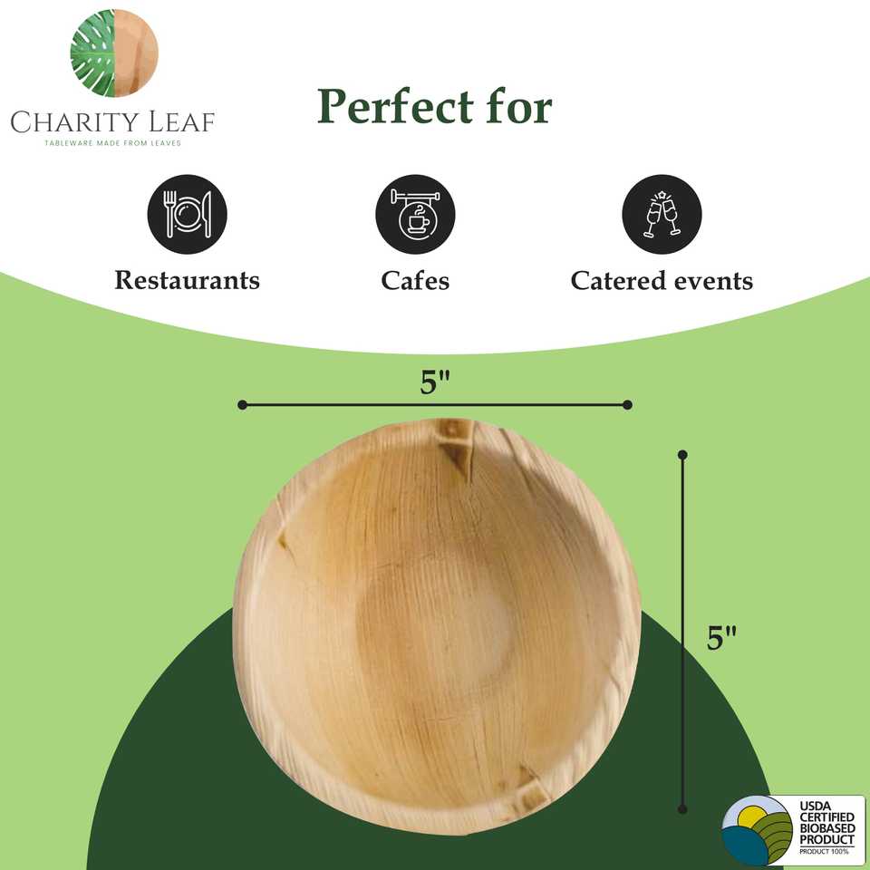 Ciotola Rotonda in Foglia di Palma Naturale da 5 Pollici per Stoviglie e Decorazioni da Tavola