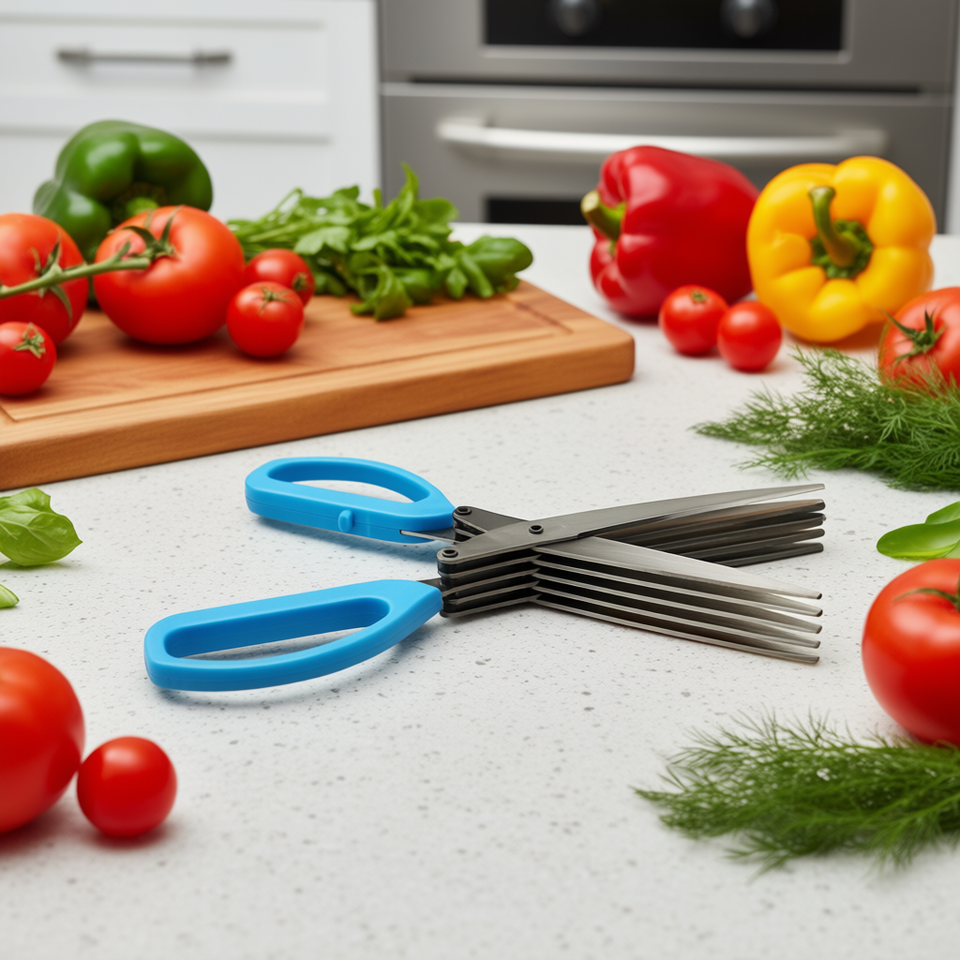 Forbici a 5 Lame Multiuso On Teck, Lame in Metallo, Manico in Plastica, Utensile da Cucina 7 Pollici