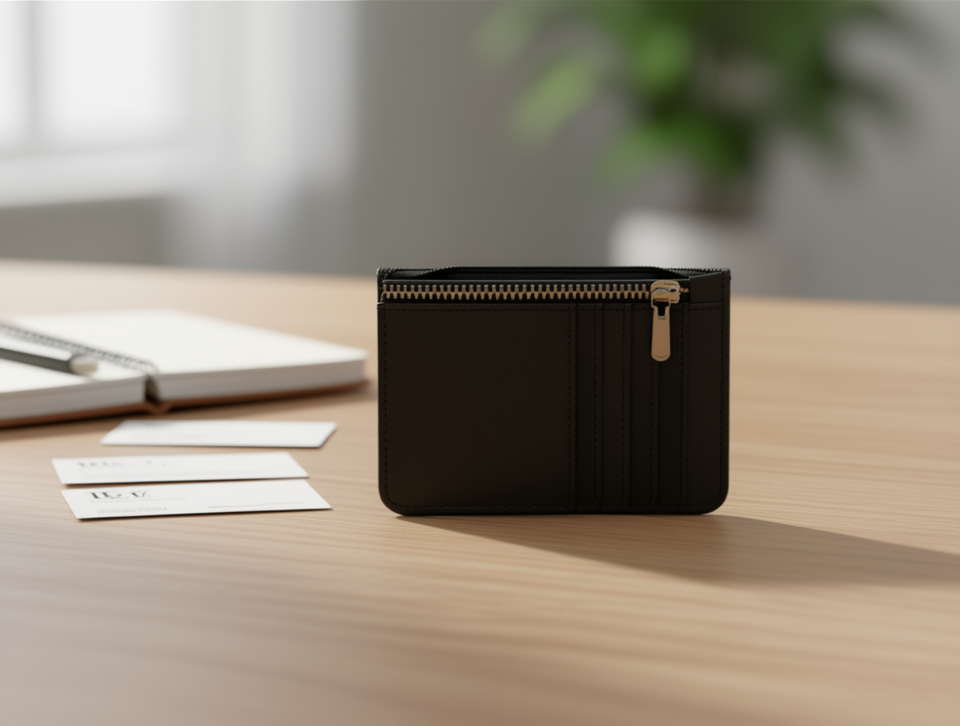 Portacarte con cerniera a 5 strati in pelle PU da 5 pollici per carte, stile solido