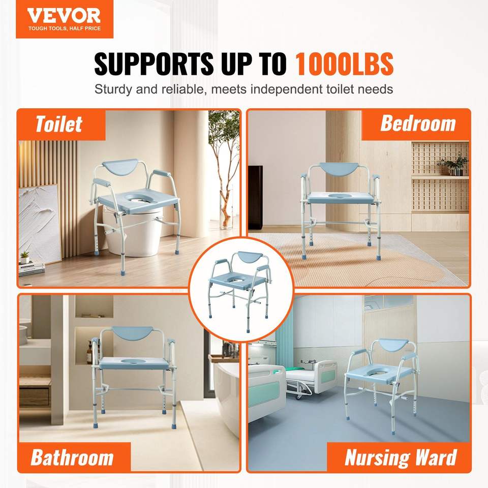 Sedia Comoda da Comodino con Altezza Regolabile a 5 Livelli, Secchio Rimovibile da 7L, Schienale Staccabile e Braccioli Abbattibili - Attrezzatura di Sicurezza per il Bagno