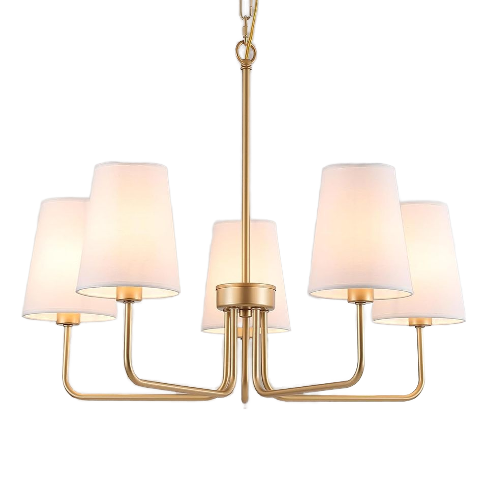 Lampadario a Sospensione Stile Fattoria a 5 Luci, Paralume in Tessuto Bianco Opaco Visual Comfort, Illuminazione Lineare per Isola Cucina