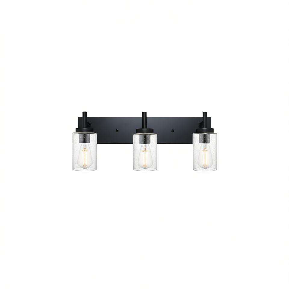 Lampada da Bagno Moderna a 3 Luci con Paralumi in Vetro Smerigliato, Base Nera E26, Montaggio a Parete, Luce Bianca Calda a Incandescenza