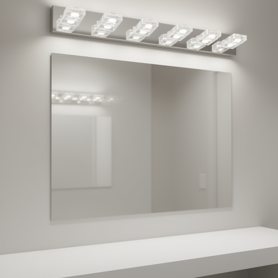Lampada da Specchio LED Moderna in Ferro Cromato, 31 Pollici, Montaggio a Parete, Illuminazione per Bagno, Luce Calda Dimmerabile