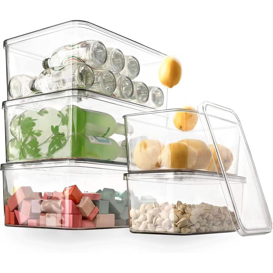 Set di 5 Contenitori in Plastica Trasparente con Coperchi, Organizzatori per Alimenti e Armadi, per Cucina, Vestiti, Asciugamani, Cosmetici