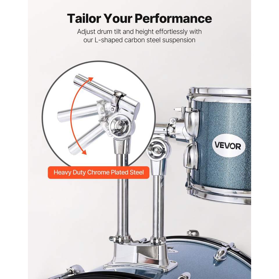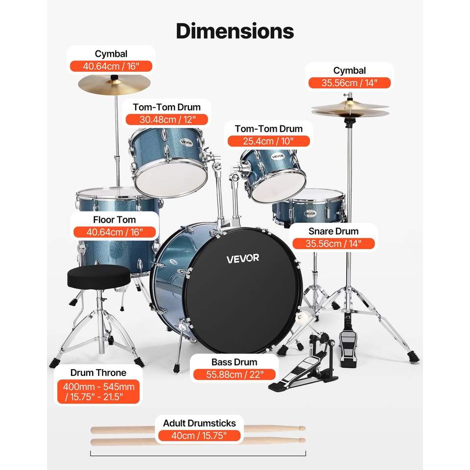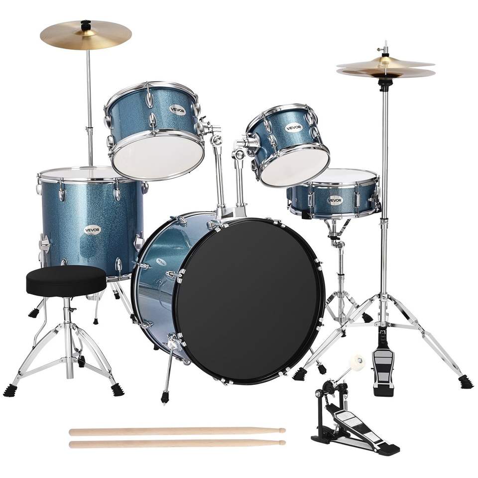 Set Batteria Junior 5 Pezzi da 22 Pollici per Principianti con Sgabello Regolabile, Piatti e Bacchette per l'Apprendimento Musicale dei Bambini