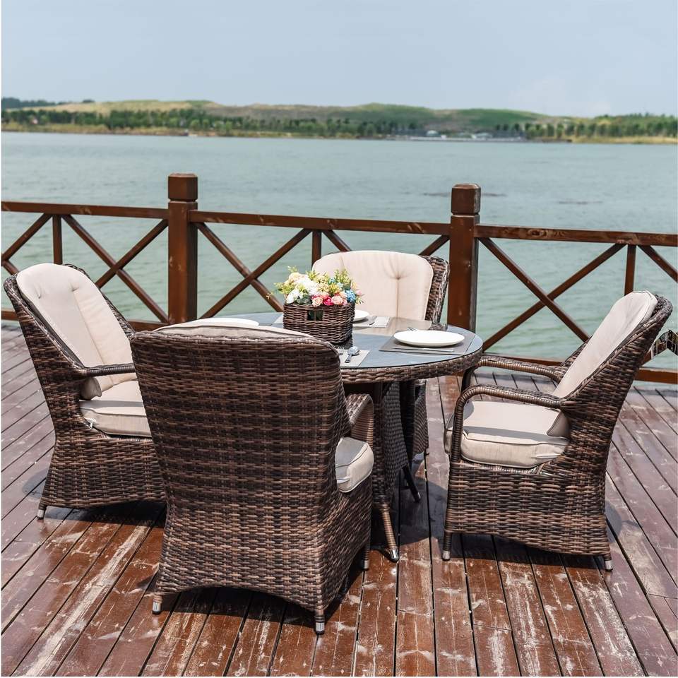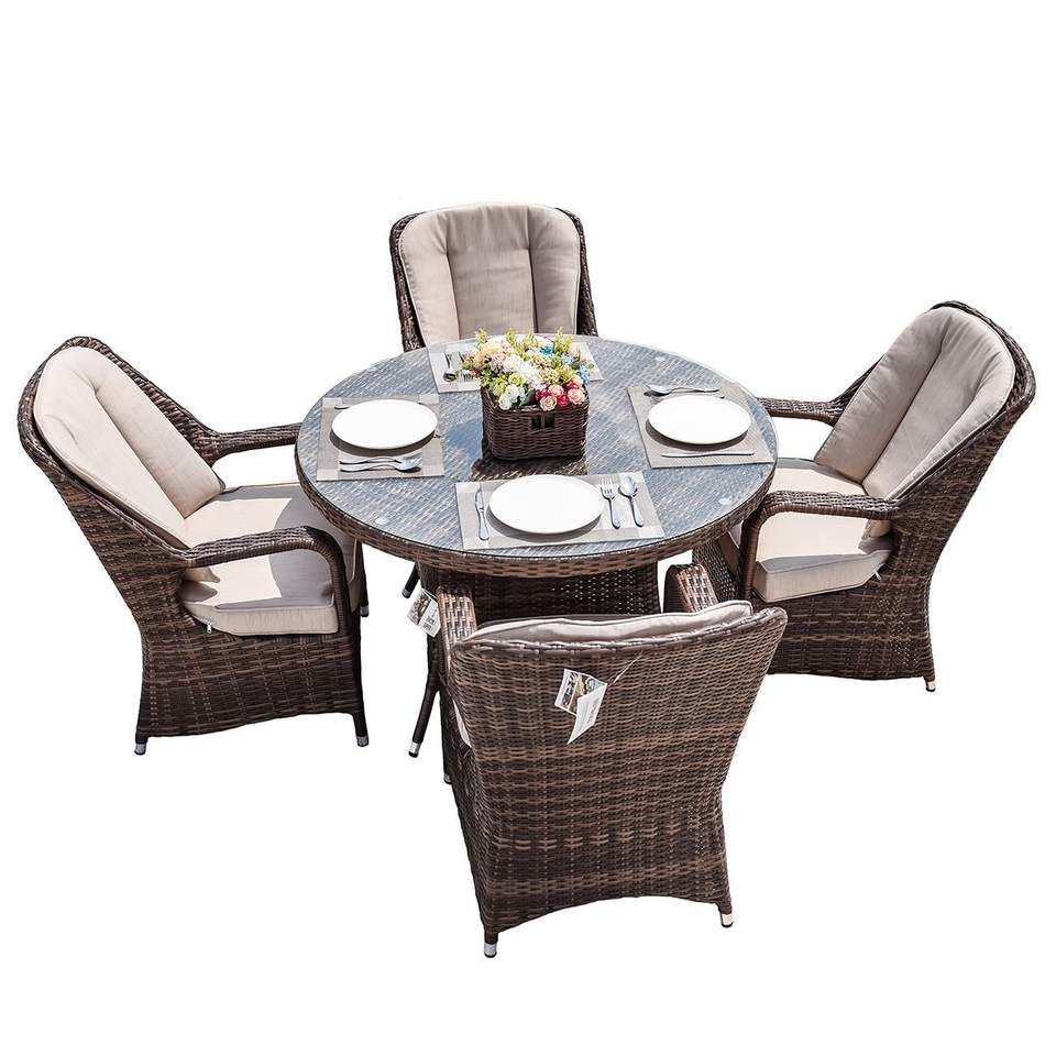 Set da Pranzo da Esterno in Alluminio e Vimini Marrone/Grigio a 5 Pezzi con Cuscini, Elegante Set da Giardino