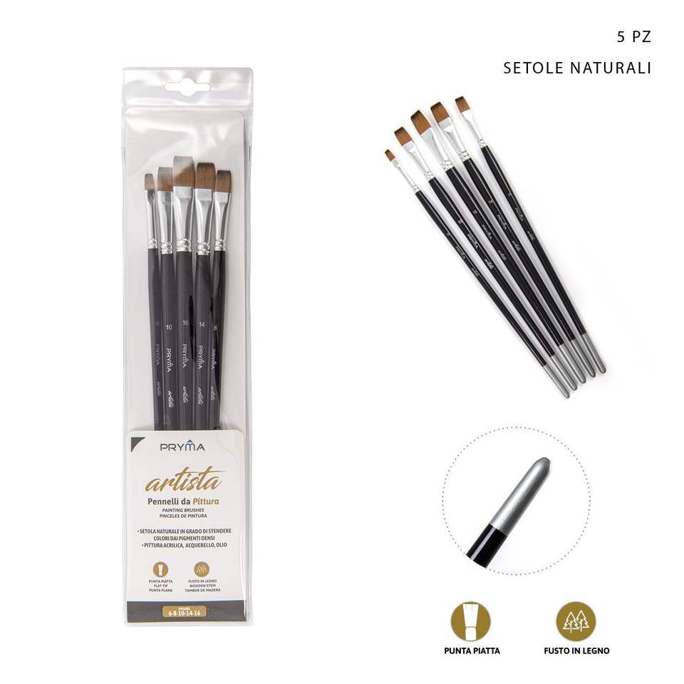 5-Piece Artist Brush Set No. 6-8-10-14-16 Craft Brushes for Paint Oil Watercolor Wood Handle Black White Blue Handle Nylon Hair