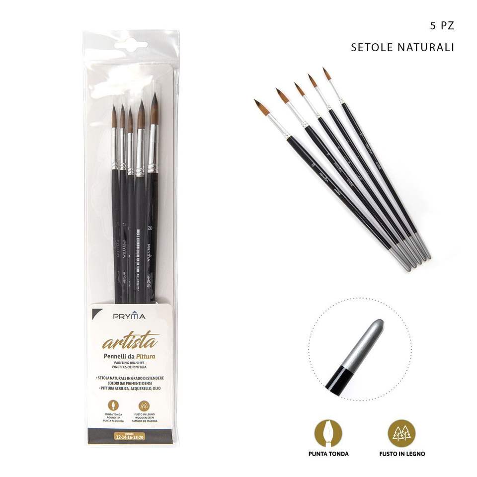 5-Piece Artist Brush Set No. 12-14-16-18-20 White & Black Handles Nylon Watercolor & Oil Paint Brushes