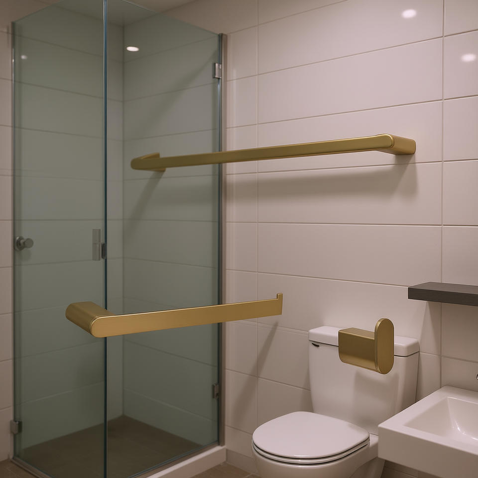 Bathroom Hardware Set 5 Piece Brass Wall Mounted Minimalist Design Linear Shape Brushed Finish