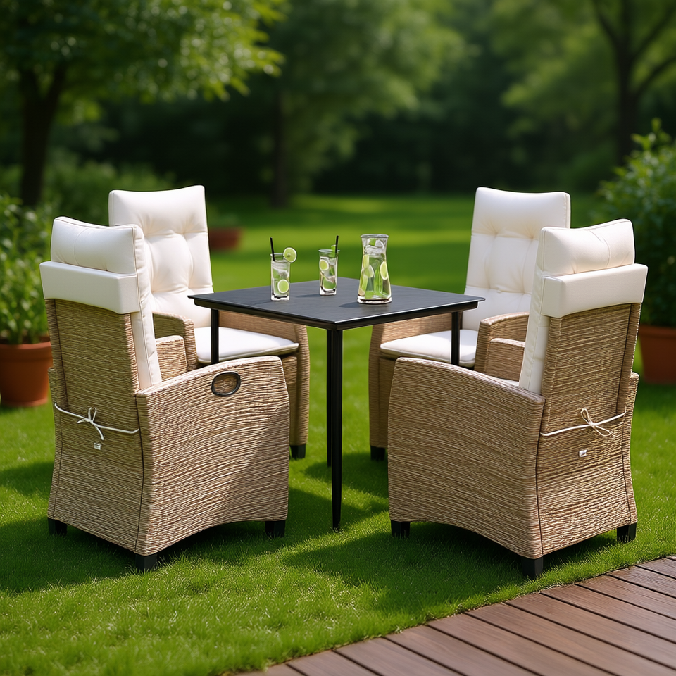 Set da pranzo da giardino in rattan beige, 5 pezzi, mobili da esterno resistenti alle intemperie per patio o giardino