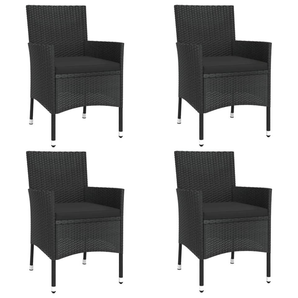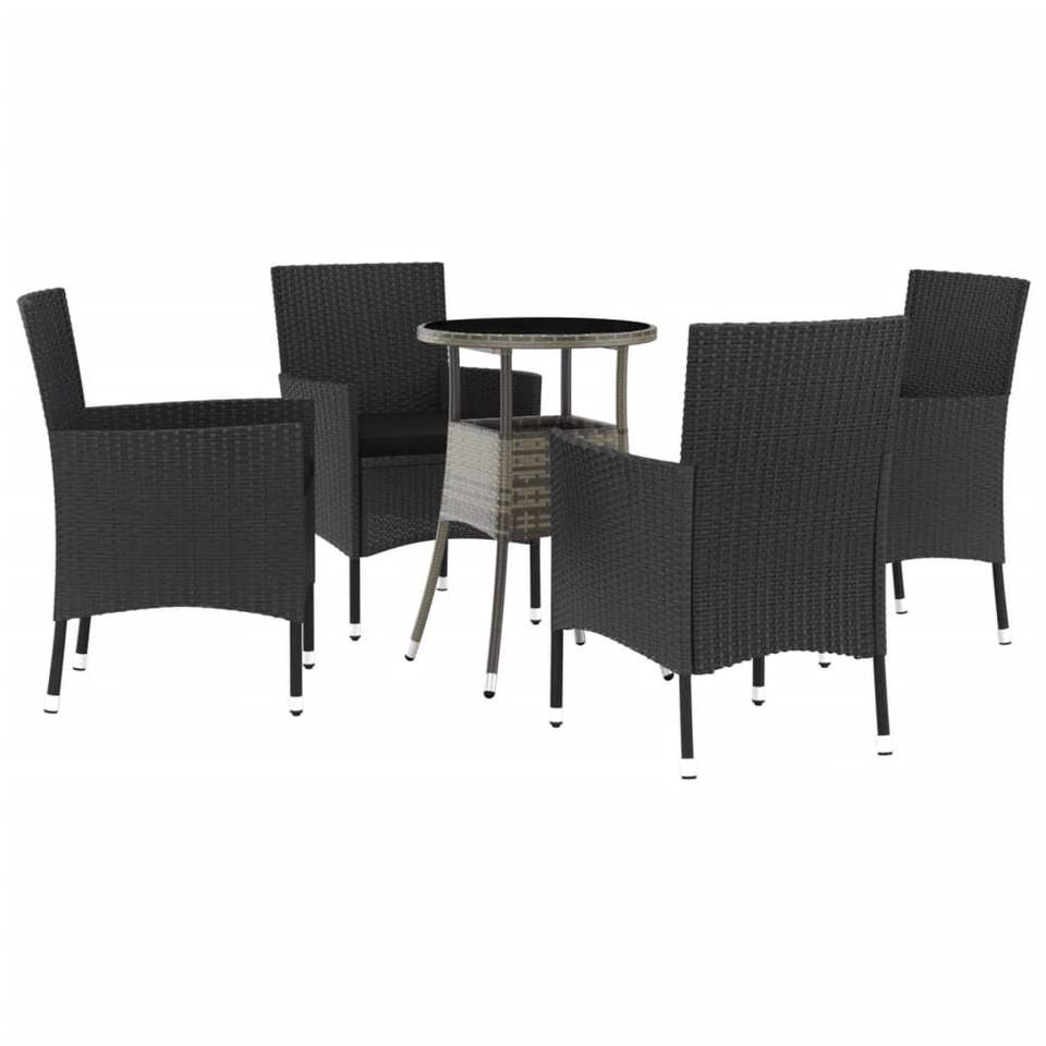 5 Piece Black Poly Rattan Patio Bistro Set with Cushions Garden Sets