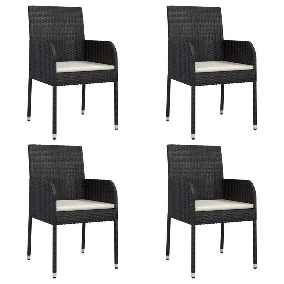 5 Piece Black Poly Rattan Patio Dining Set with Cushions Garden Sets