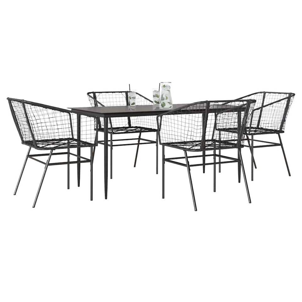 Set da pranzo con Patio in Poly Rattan nero da 5 pezzi con mobili da esterno in vetro resistente