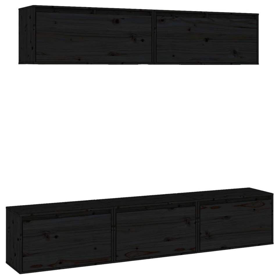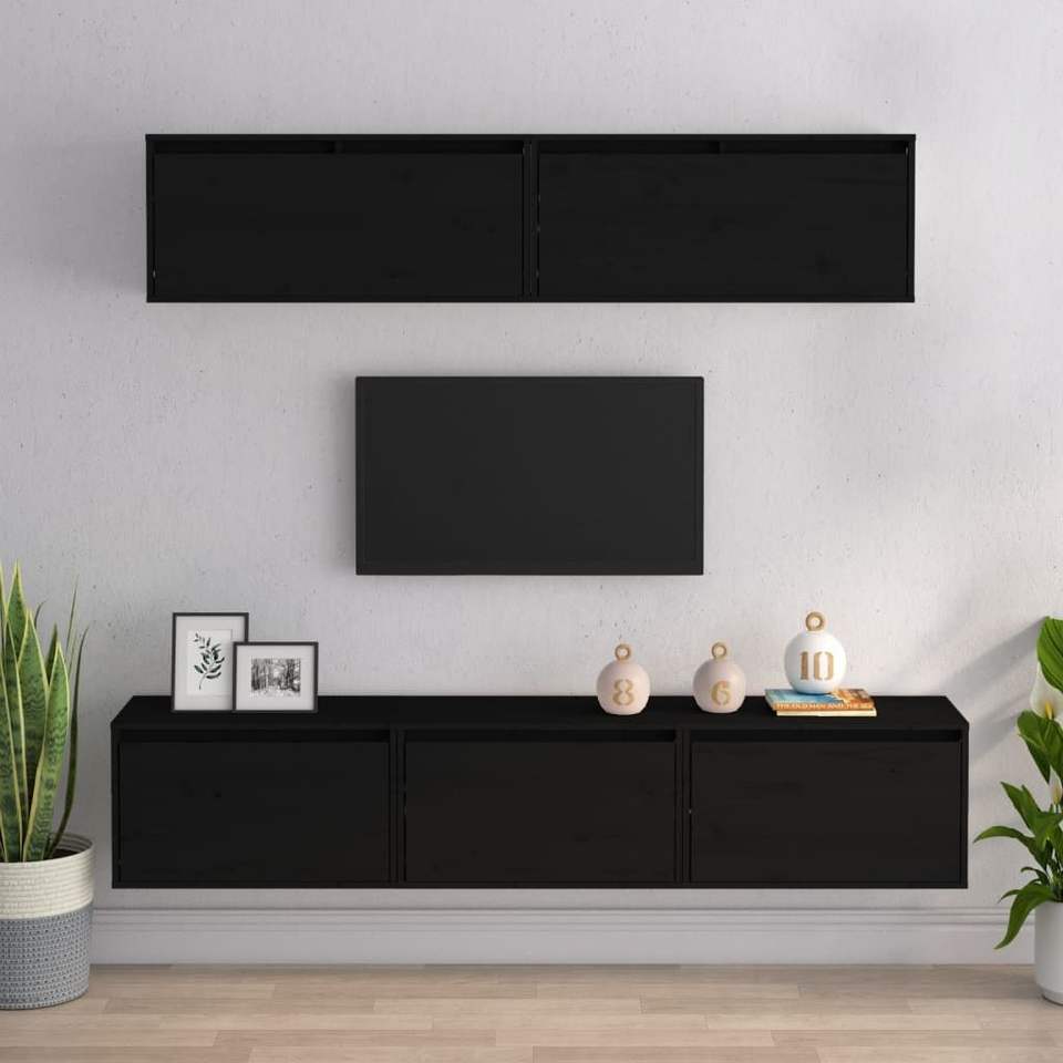 5-Piece Black Solid Pine Wood TV Cabinets for Living Room