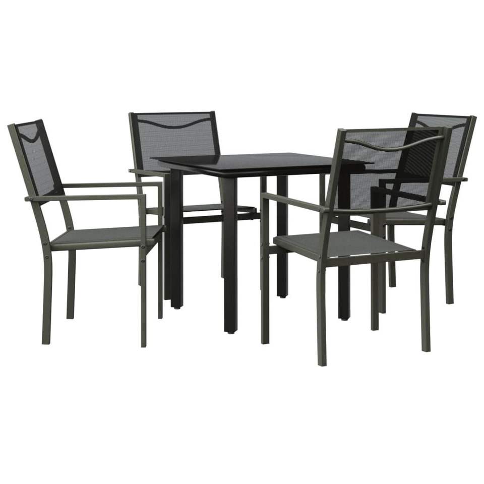 Set da pranzo da 5 pezzi in acciaio nero e Patio in Textilene elegante collezione da giardino
