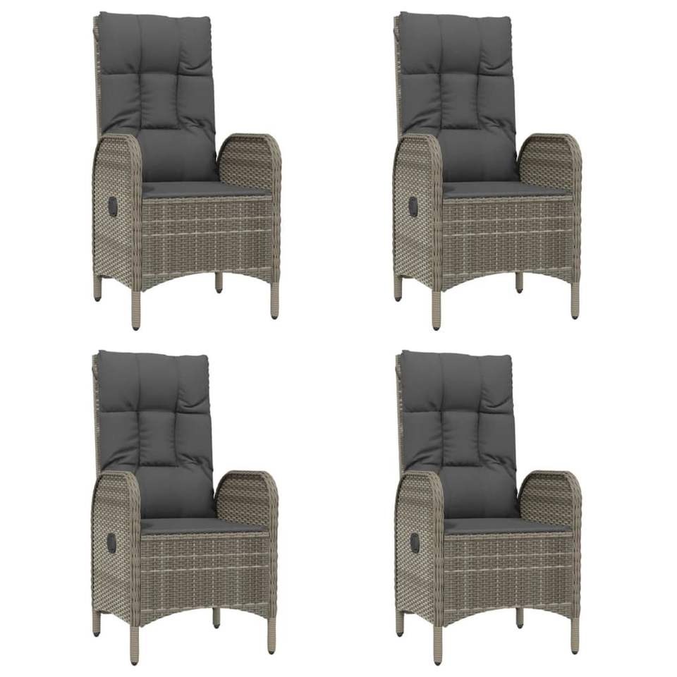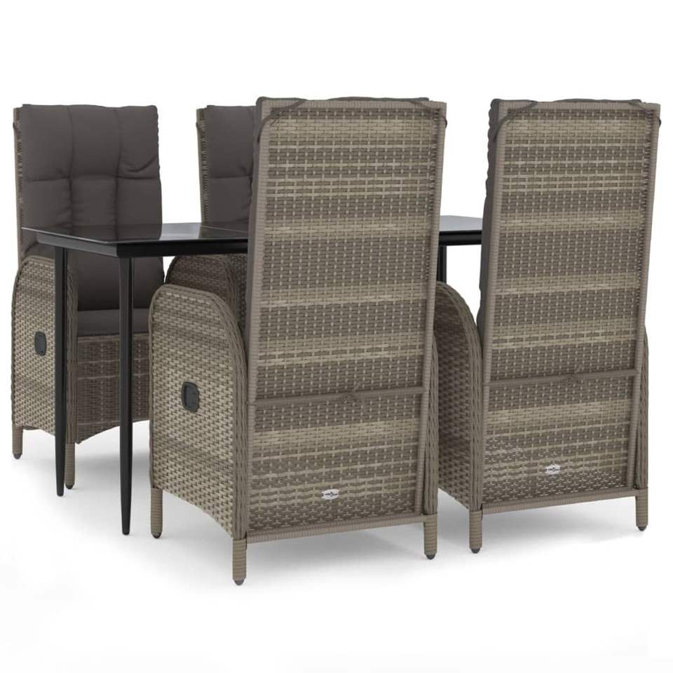 Set da pranzo da giardino in polyrattan, 5 pezzi, grigio, resistente alle intemperie, mobili da esterno in stile contemporaneo, struttura in acciaio