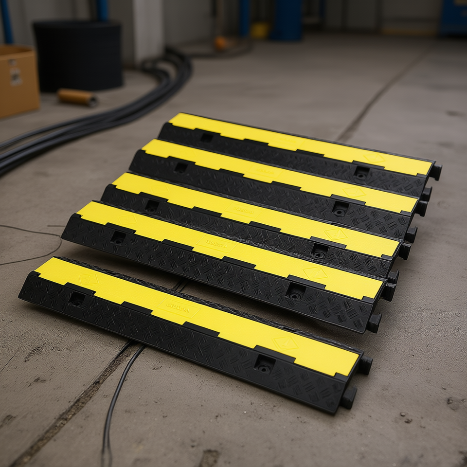 Rampa Protettiva per Cavi, Set da 5 Pezzi, 2 Canali, Capacità di Carico 12000 Libbre, Copertura in Plastica per Protezione Cavi