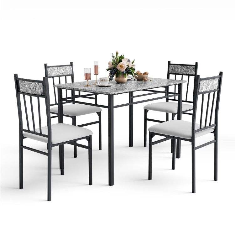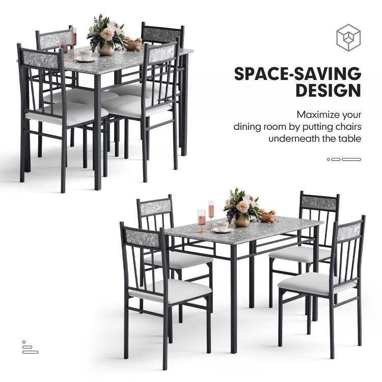 Set da Pranzo in Finto Marmo a 5 Pezzi con Tavolo