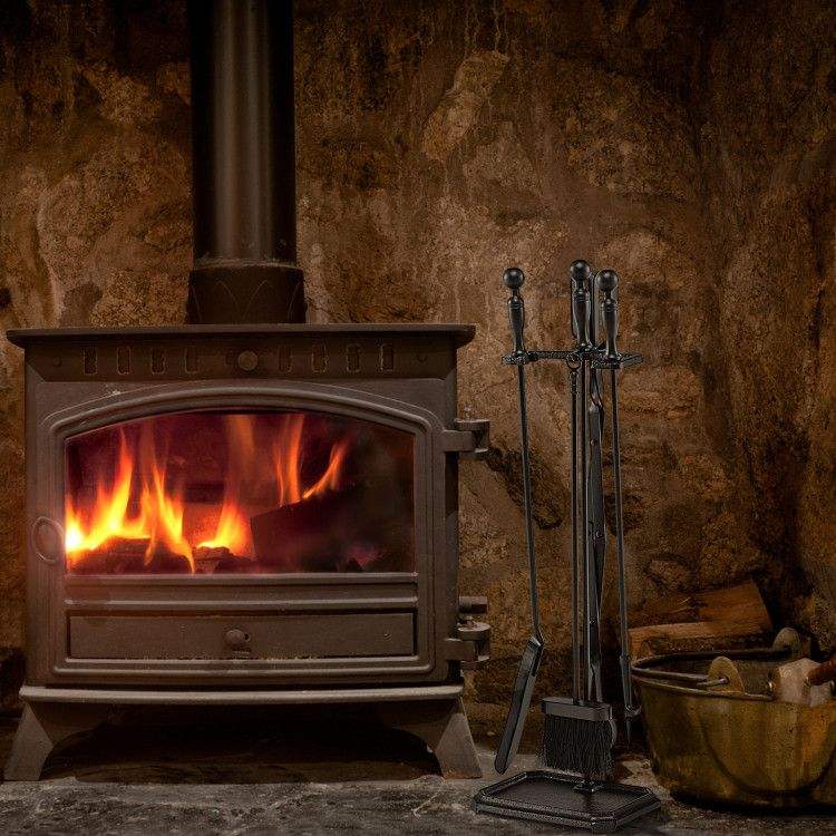5-Piece Fireplace Tool Set with Stand Including Tong Brush Shovel Poker Essentials Accessory