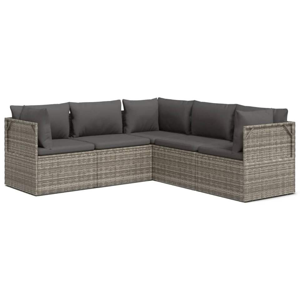 Set da salotto con 5 pezzi in Poly Rattan grigio con cuscini da giardino