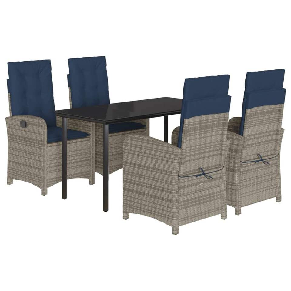 Set da pranzo Patio in Rattan grigio 5 pezzi con cuscini eleganti Set da giardino