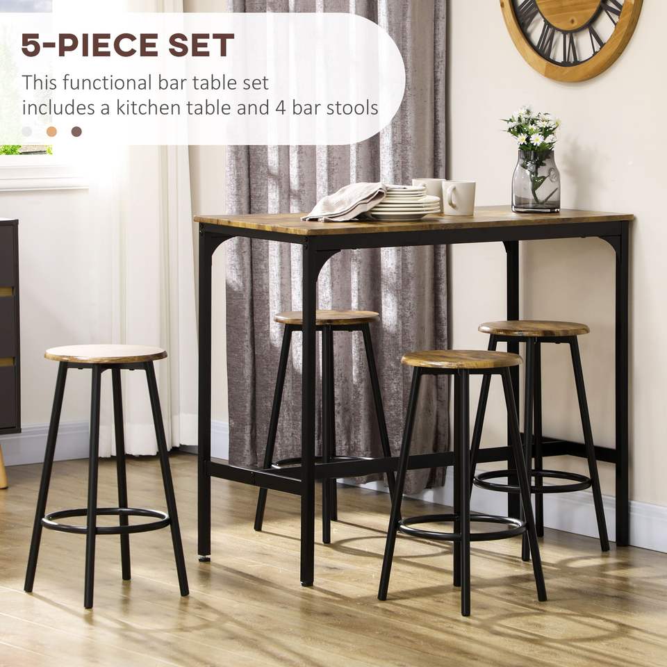 5-Piece Industrial Bar Furniture Set Round Metal Frame Stools and Table for Pub Dining Room