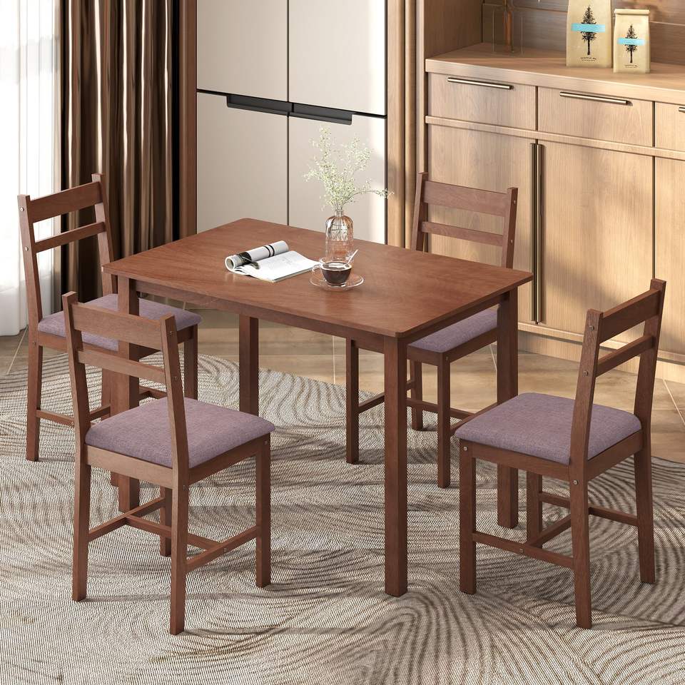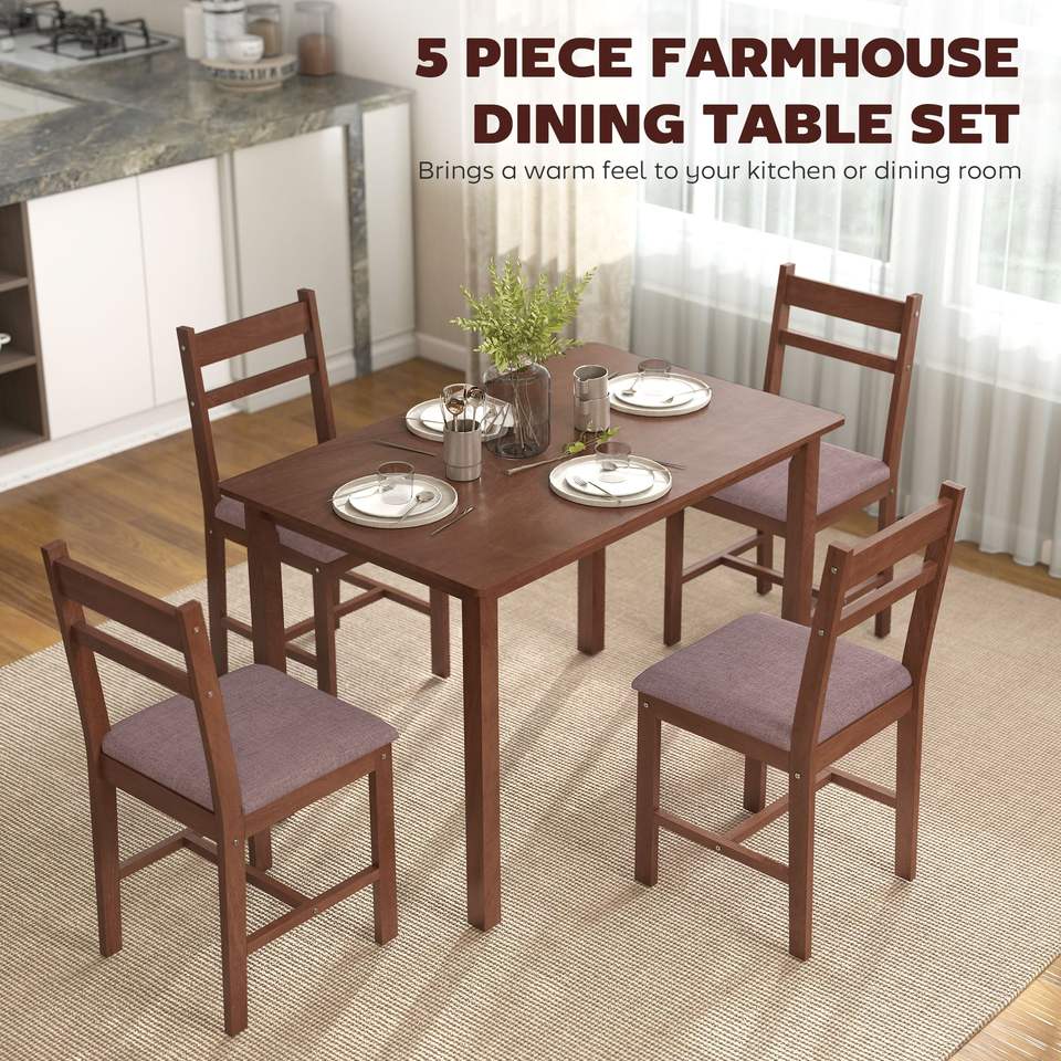 Set da Pranzo in Stile Fattoria a 5 Pezzi, Marrone Chiaro, Tavolo in Legno Massello per 4 Persone con Sedie Imbottite