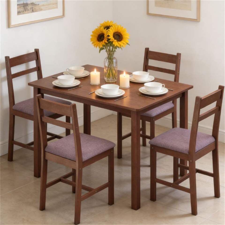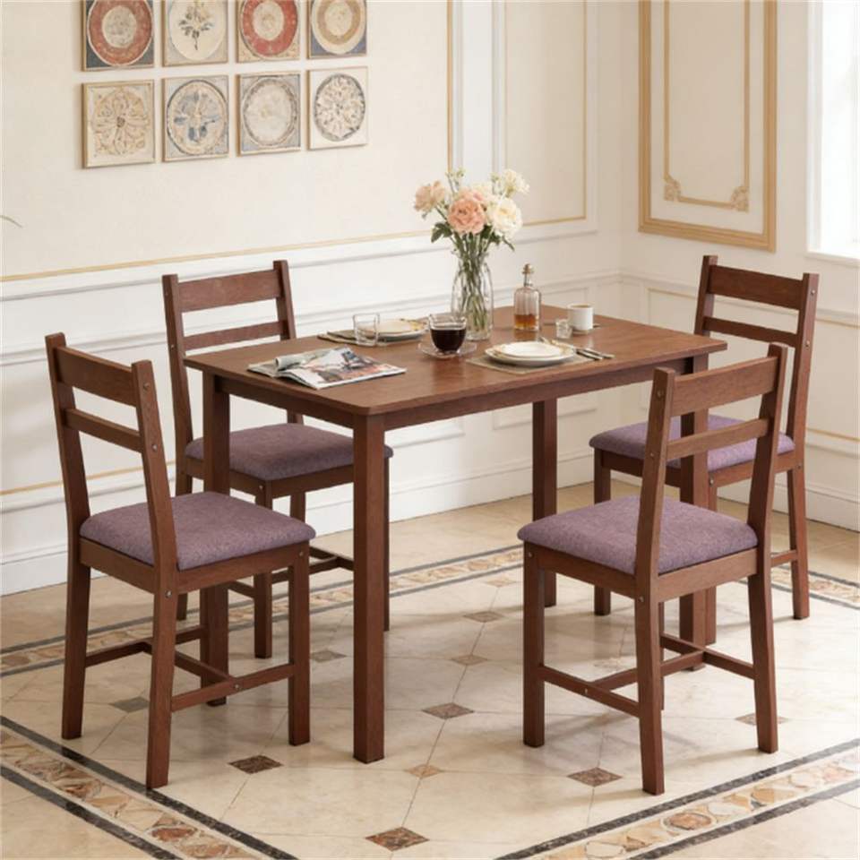 Set da pranzo in stile rustico marrone chiaro da 5 pezzi, tavolo da cucina con sedie