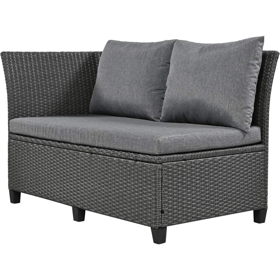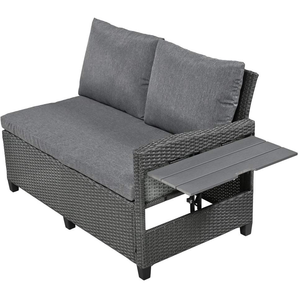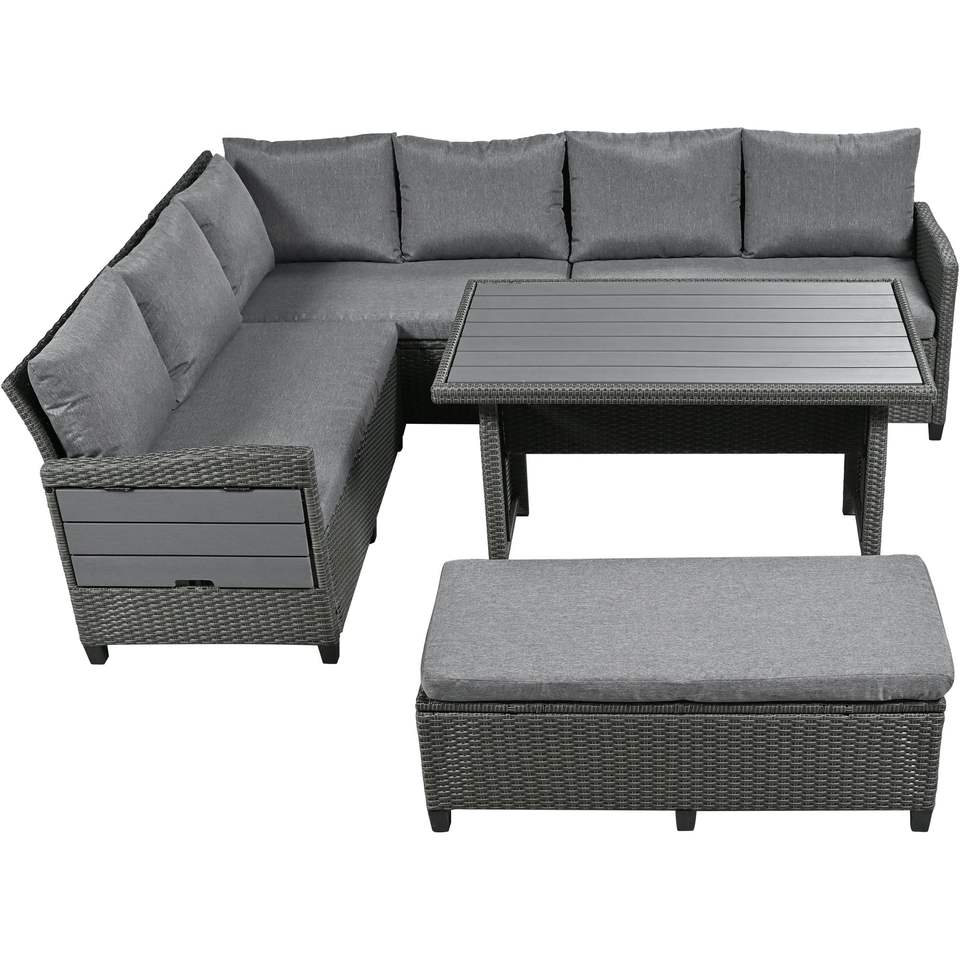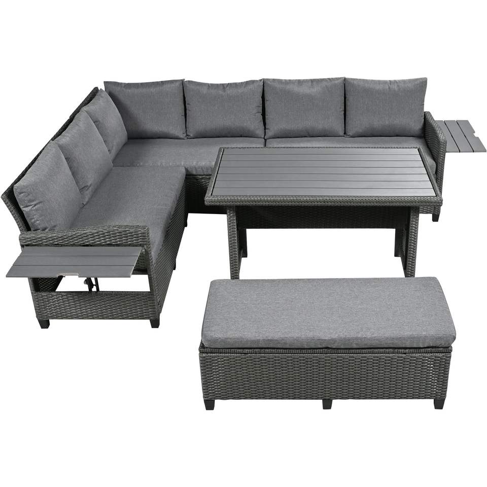 Set Divano da Esterno in Rattan PE a 5 Pezzi a Forma di L con 2 Tavolini Laterali Estensibili per Sala da Pranzo