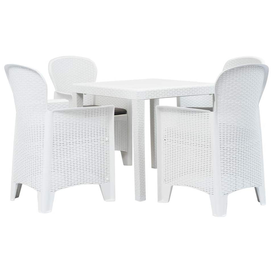 Set da pranzo da 5 pezzi in Rattan bianco Look mobili in plastica