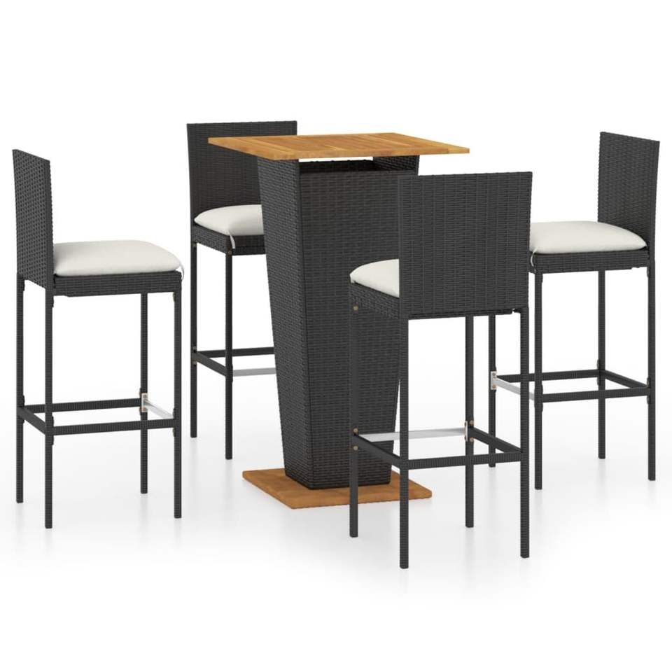 Set da Bar in Poly Rattan 5 pezzi con cuscini mobili da giardino neri