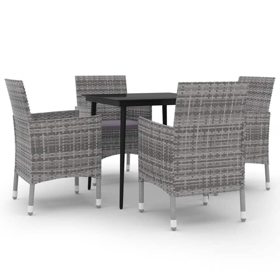 Set da pranzo da 5 pezzi in Poly Rattan e vetro con comodi cuscini