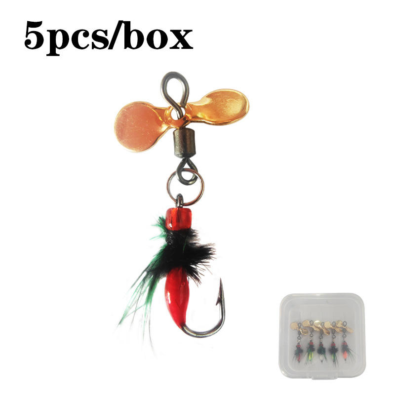 Set da 5 Pezzi di Esche Artificiali Bioniche con Micro-Oggetti, Elica, Paillettes, Mosquito Velenoso, Bocca di Cavallo, Striscia Bianca, Fondo in Metallo con Piombo
